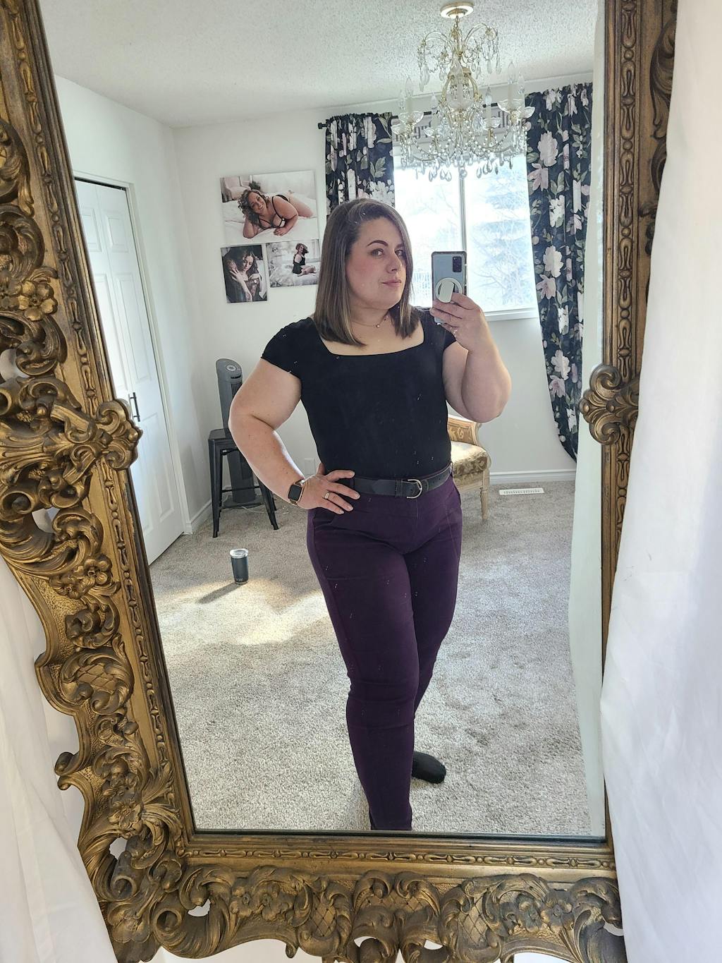 Comfortable dynamic stretchy waist, providing all around ease & roominess, never too tight or restrictive. Perfect from office to happy hour.